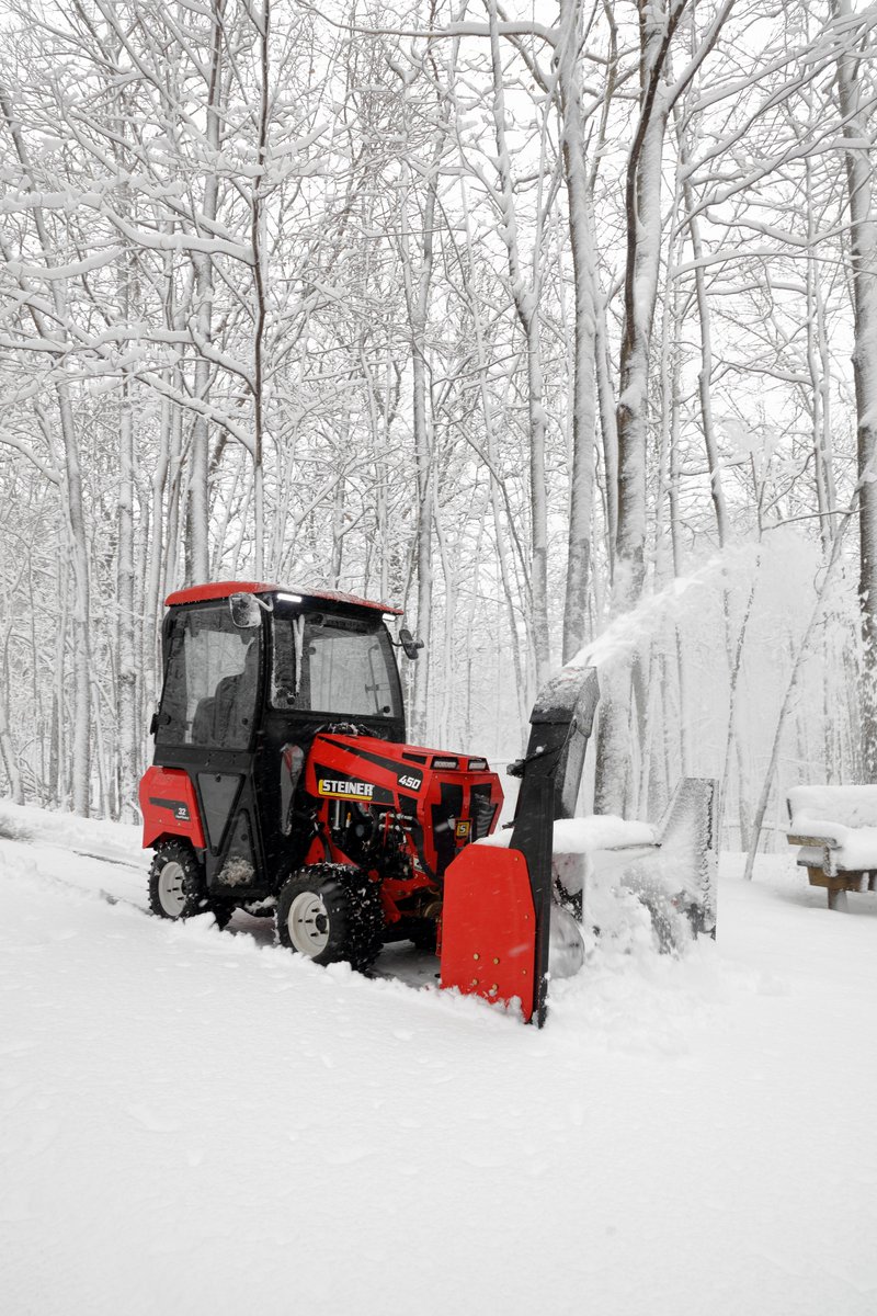 Attachment Overview Cab Snow Blower What Makes The Steiner 450 A Winter Warrior Well There S The Heated Cab And Snow Blower Attachment For Starters Get An Even Closer Look At